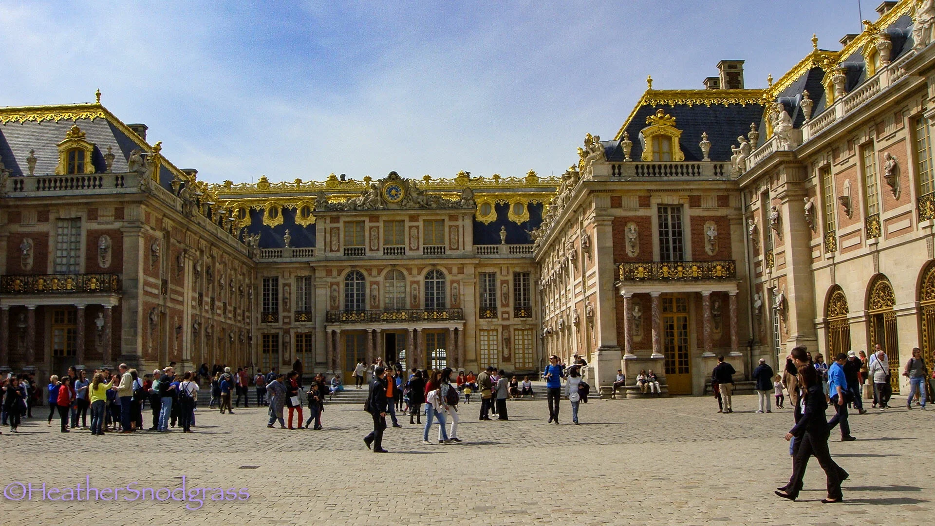In front of the gold gates at Versailles